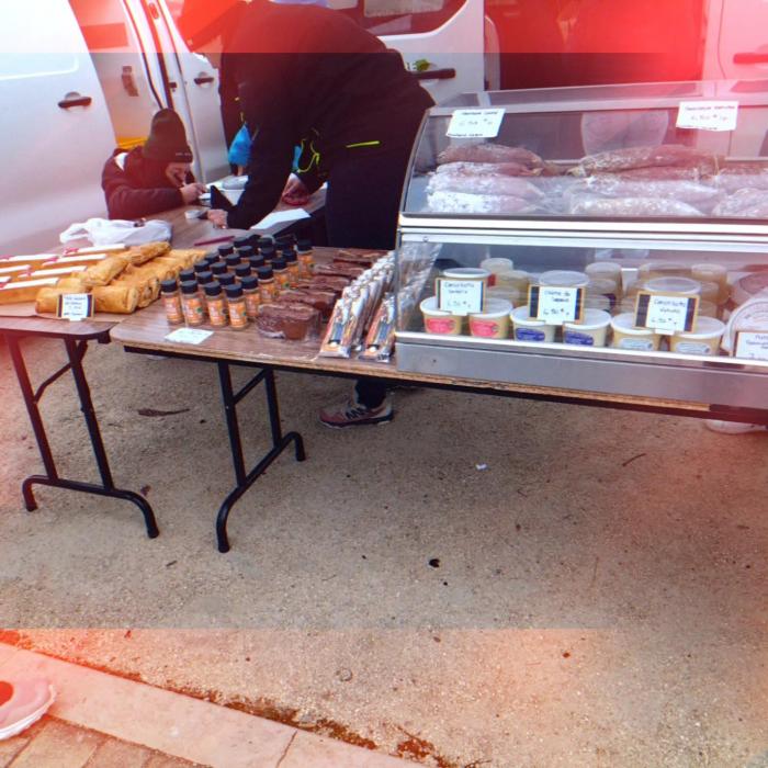 Dégustation et vente de produits locaux sur leur stand.