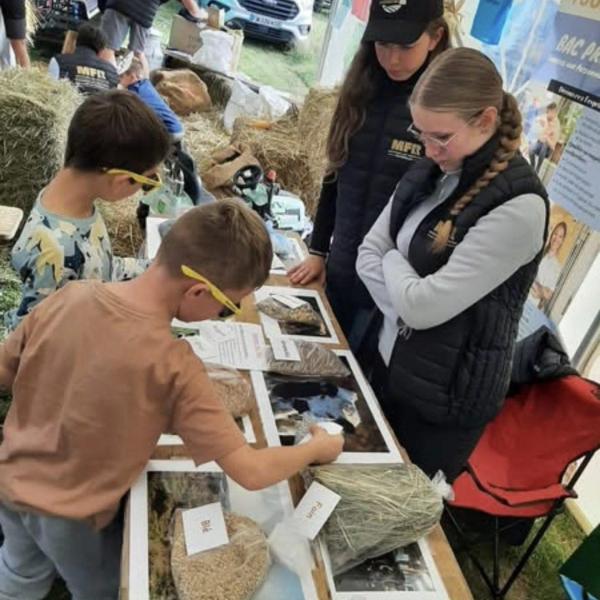- Un atelier de reconnaissance du fourrage : ludique et pédagogique, cette animation a permis aux visiteurs de découvrir les différents types de fourrage utilisés pour nourrir les animaux, avec des explications claires fournies par les élèves.