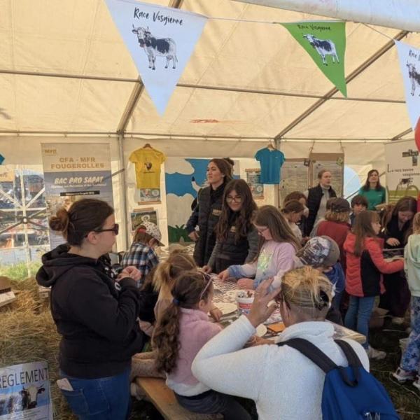 Le 13 octobre dernier, la classe de Première Services aux Personnes (SAPAT) a pris part à la foire agricole de Saint-Bresson. À cette occasion, les élèves ont animé trois ateliers ludiques et pédagogiques, conçus dans le cadre de leur formation et intégrés à leur évaluation de l’année.