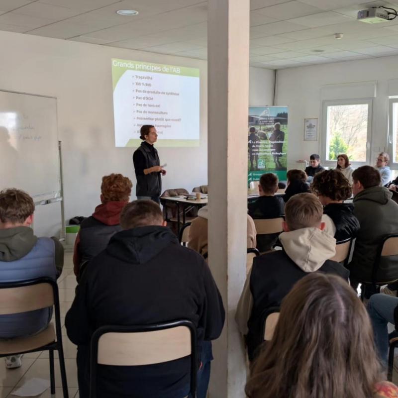 Au cours de la matinée, Laétitia FAYARD (PAI 70) et Louise DALMASSO (GAB Haute-Saône) ont présenté le parcours à l’installation, ses spécificités en termes de DJA si conversion et/ou installation en AB, ainsi que les démarches à effectuer en cas de conversion vers le bio.