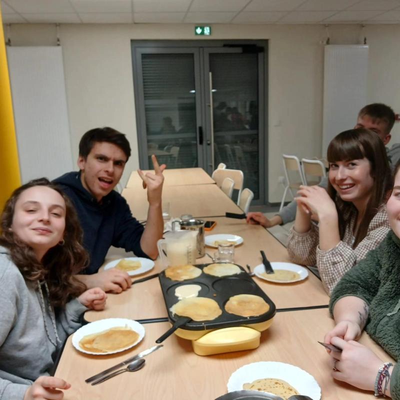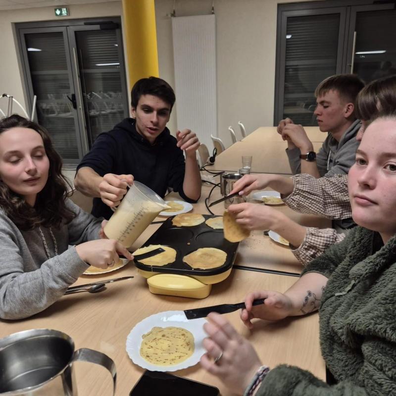 ?Entre deux lancers de crêpes (plus ou moins réussis...), l'ambiance était au rendez-vous. C’est aussi ça l’esprit MFR : apprendre, partager et vivre des moments de convivialité qui soudent les promos.